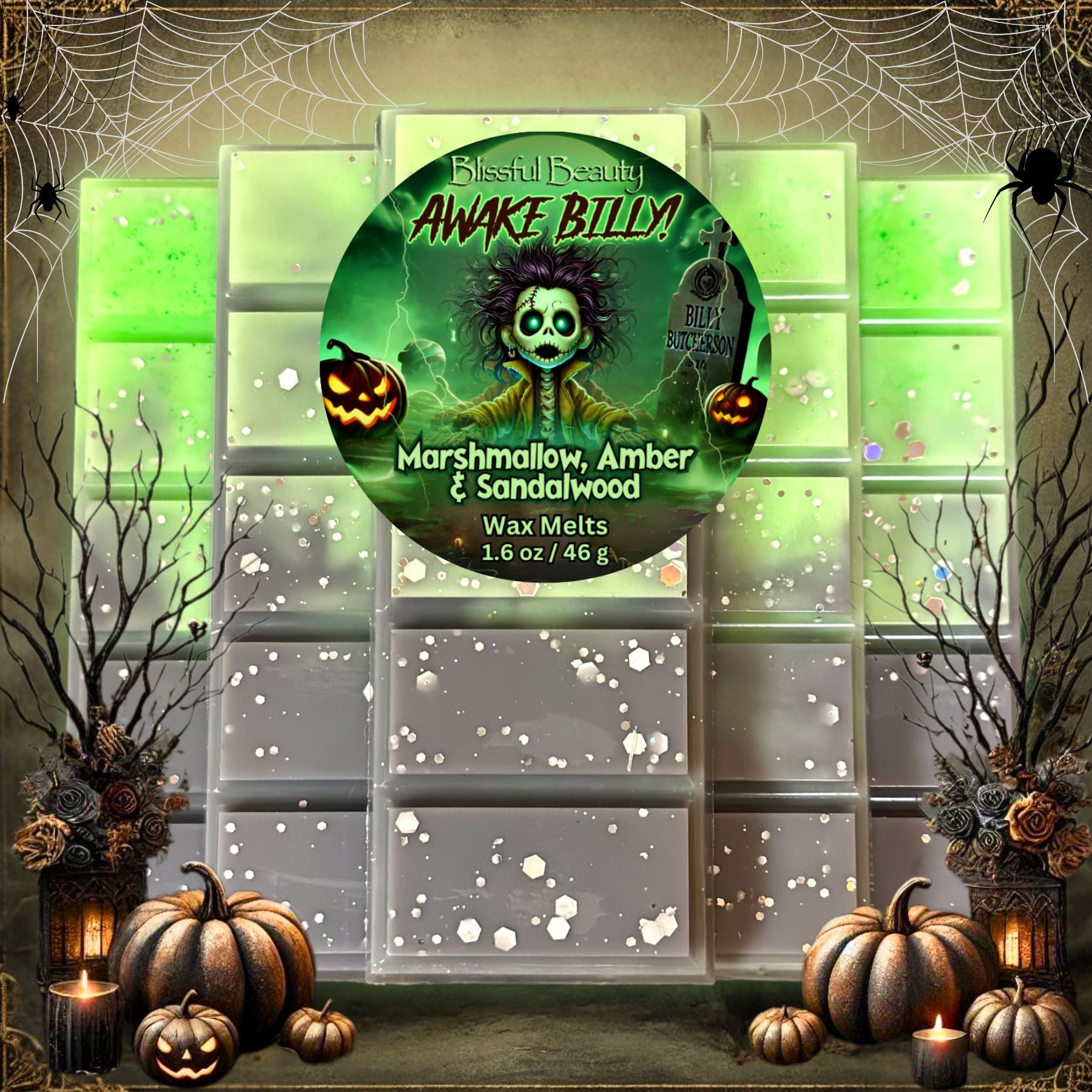 Our Awake Billy! Snap Bar fills your home with toasted marshmallow, glowing amber, and zombied sandalwood, a cozy-yet-creepy fragrance that lingers like smoke from the underworld. Just snap off a piece, drop it in your warmer, and let the undead magic rise.