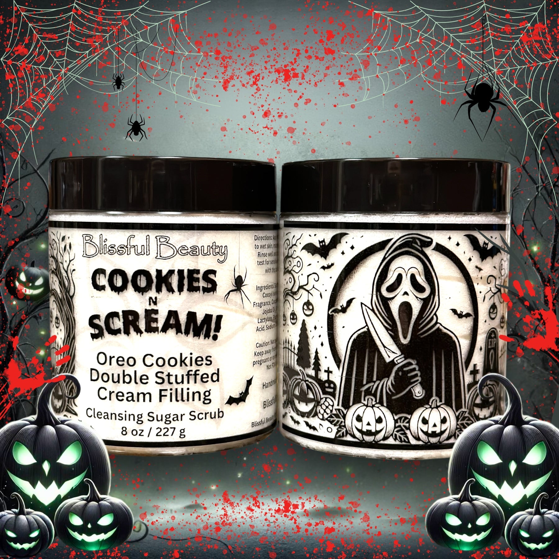 Buff away the horror and reveal dangerously smooth skin with Cookies N Scream Sugar Scrub. This deadly-sweet mix of Oreo cookies and double-stuffed cream filling whips into a creamy scrub that polishes away dullness while leaving behind hauntingly soft skin. Sweet, spooky, and wickedly addictive — this scrub is the ultimate killer glow-up.