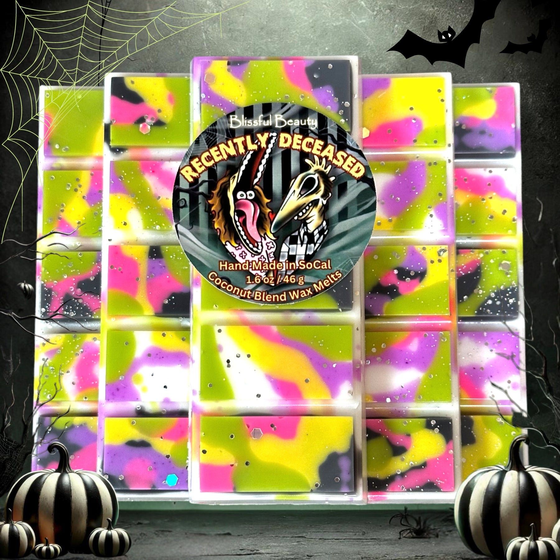 Recently Deceased ☠️ Sweet enough to wake the dead — this snap bar transforms any space into a candy-coated haunt. Banana taffy and pink bubblegum melt together with creamy coconut and vanilla, filling your room with a playful, fruity sweetness. Easy to snap, melt, and enjoy for hours of spooky-sweet fragrance.